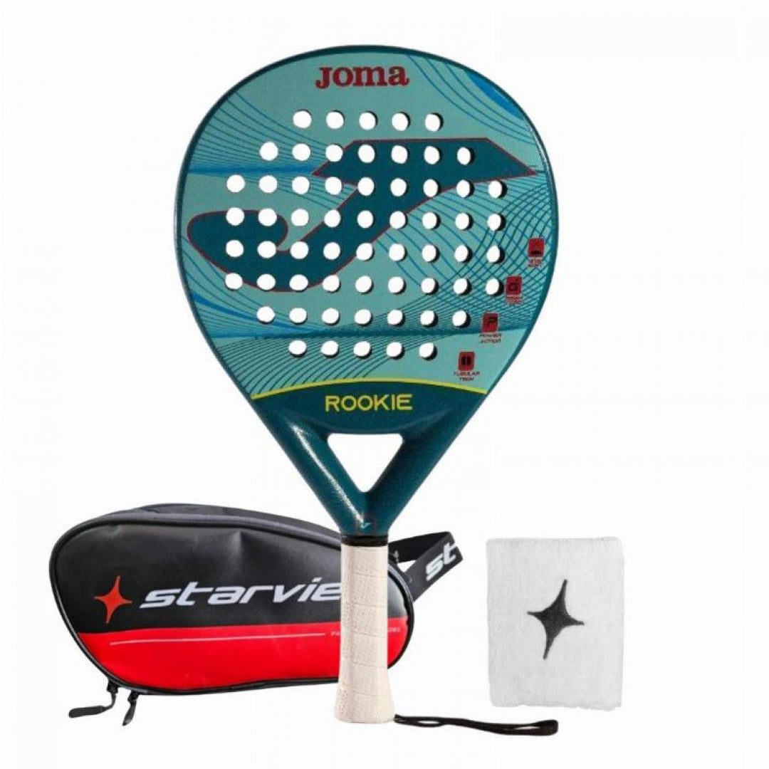 Pack Pala Joma Rookie Azul con Neceser y Muñequera Comodidad, control y estilo para tus primeros pasos en pista Este pack está diseñado para jugadores que se inician en el pádel o que buscan una pala ligera, manejable y con una estética cuidada. Incluye la pala Joma Rookie en azul, junto con dos accesorios de gran utilidad: un neceser y una muñequera de StarVie. Pala Joma Rookie Azul Con forma redonda, gran punto dulce y un peso optimizado, esta pala es perfecta para quienes quieren mejorar su técnica sin complicaciones. Su diseño en tonos azules transmite frescura y confianza, ideal para destacar con un estilo limpio y deportivo. Muñequera StarVie Blanca con Negro Ligera, cómoda y absorbente, ayuda a mantener la muñeca seca durante el juego y añade un toque clásico a tu equipación. Neceser StarVie Negro con Rojo Compacto y resistente, perfecto para transportar accesorios esenciales o artículos personales. Un complemento práctico para llevar siempre contigo en cada entrenamiento o partido. Un pack completo, funcional y atractivo, pensado para comenzar en el pádel con el mejor equipamiento desde el primer día. Disponible en Tienda Padelpoint. Tu juego empieza con confianza y estilo.
